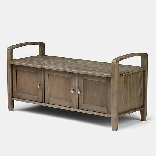 Amazon Com Spacious Storage Bench Grey Wooden Wide Rectangular