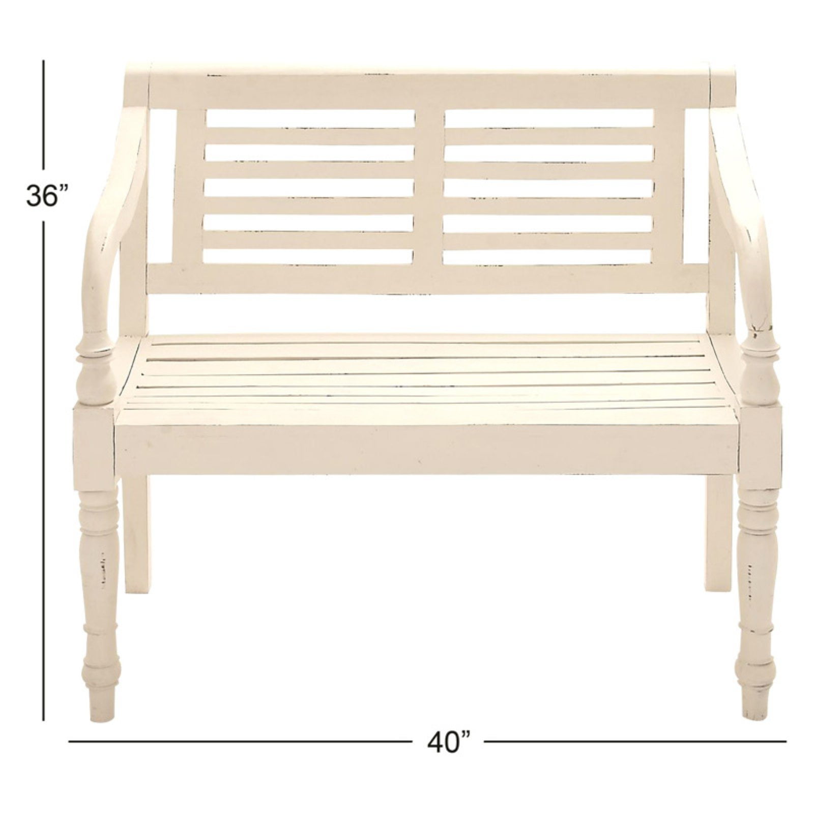 Farmhouse 36 X 40 Inch White Mahogany Wood Slatted Love Seat Bench