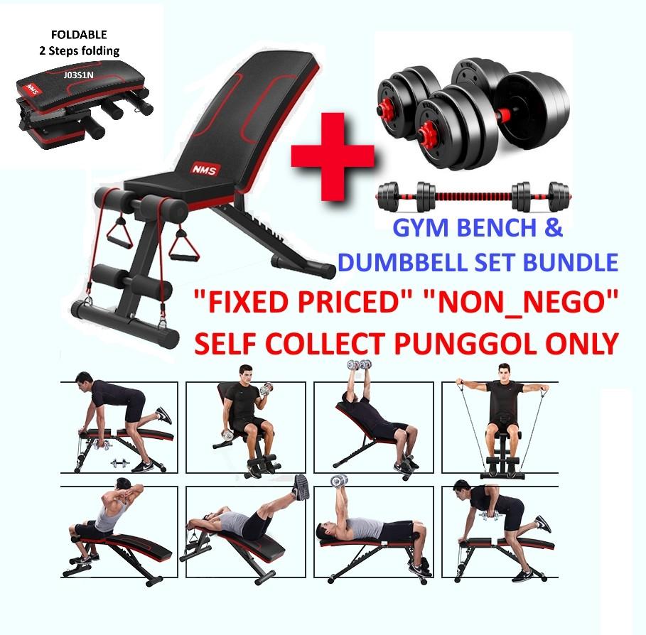 40kg Adjustable Dumbell With Weights Bench Home Gym Exercise