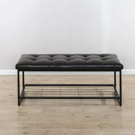 Zinus Mindy Faux Leather 48 Tufted Bench With Storage Shelf