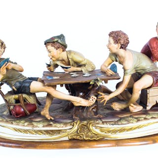 Capodimonte Great Composition Man With Flask On The Bench