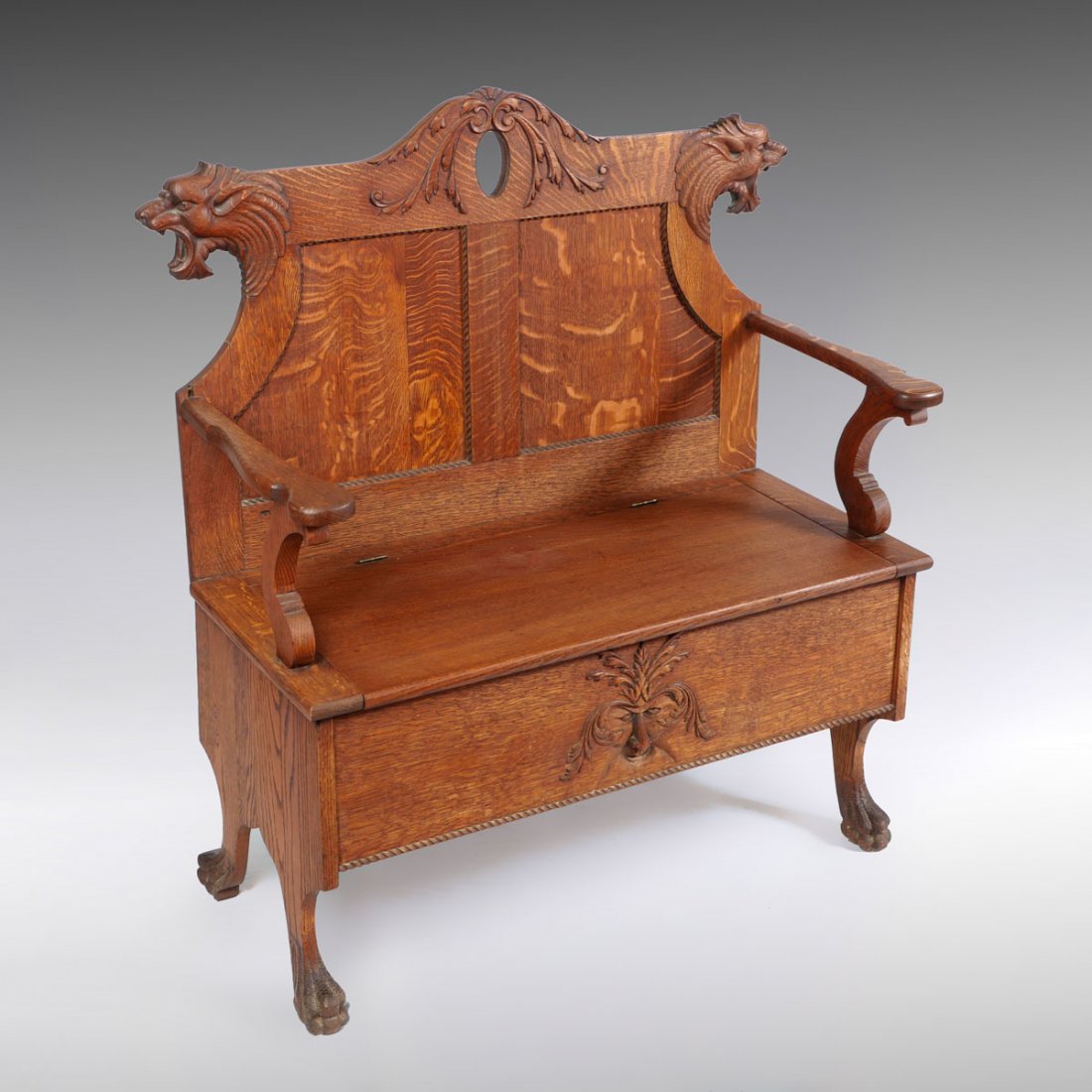 Carved Tiger Oak Bench With Storage Aug 25 2019 Burchard