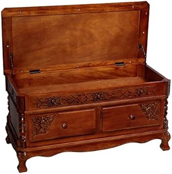 International Caravan Hand Carved Wood Storage Bench With Cushion