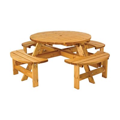 Barrel Garden Circular Timber Picnic Table With Seat Backs