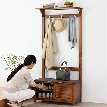 Amazon Com Coat Rack Feifei Solid Wood With Shoe Bench Coat