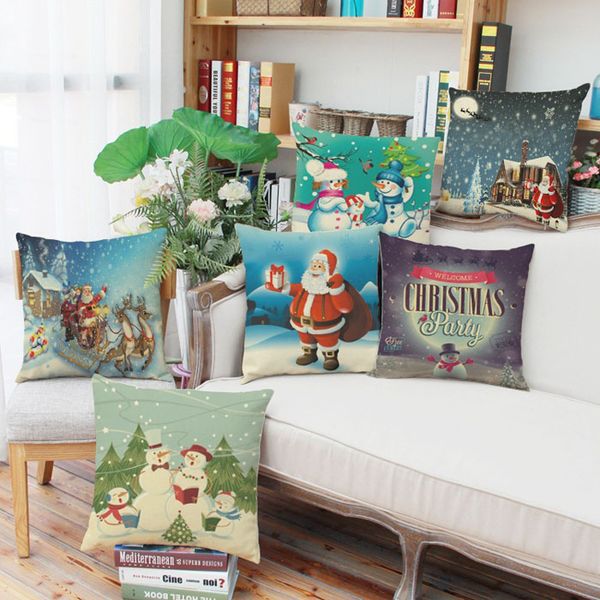 Merry Christmas Theme Cushion Cover Full Screen Pattern Linen