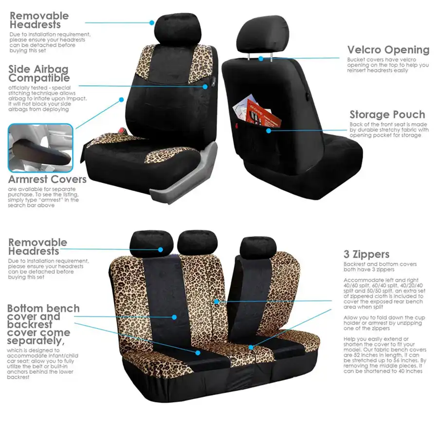 Front 60 40 Split Bench Thick Seat Covers Adjustable Headrest Etsy