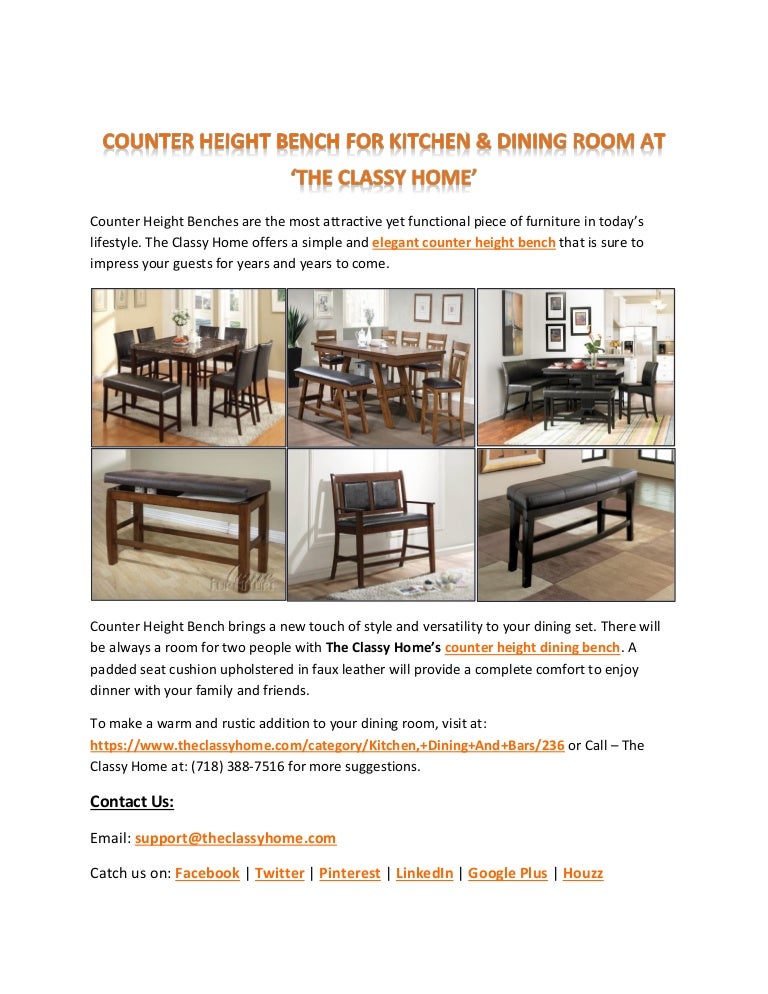 Counter Height Benches Kitchen Dining Room The Classy Home