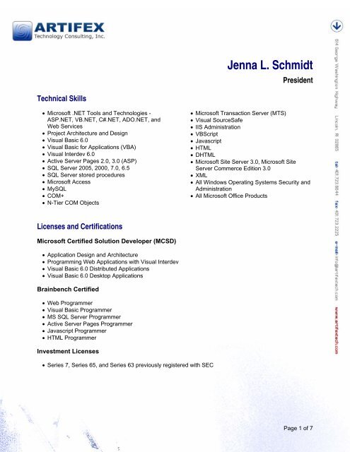 Jenna L Schmidt Artifex Technology Consulting Inc