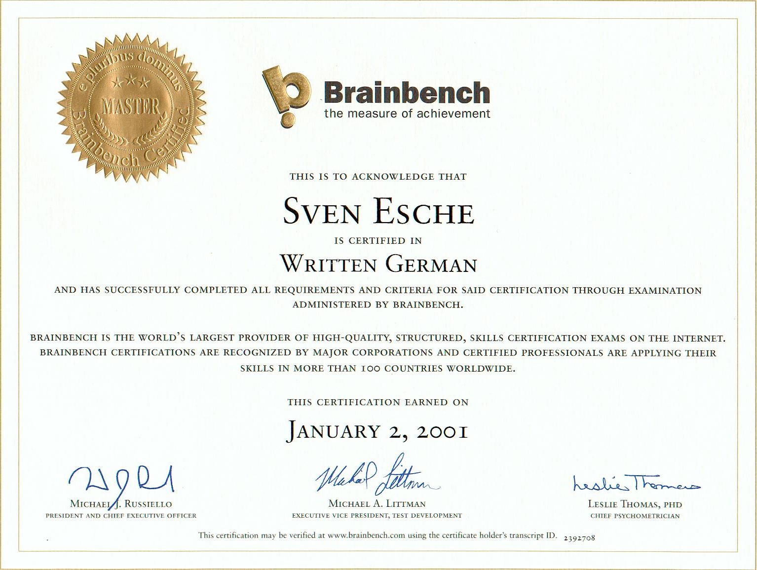 Martin Geisler Online Blog Archive Brainbench Certificate