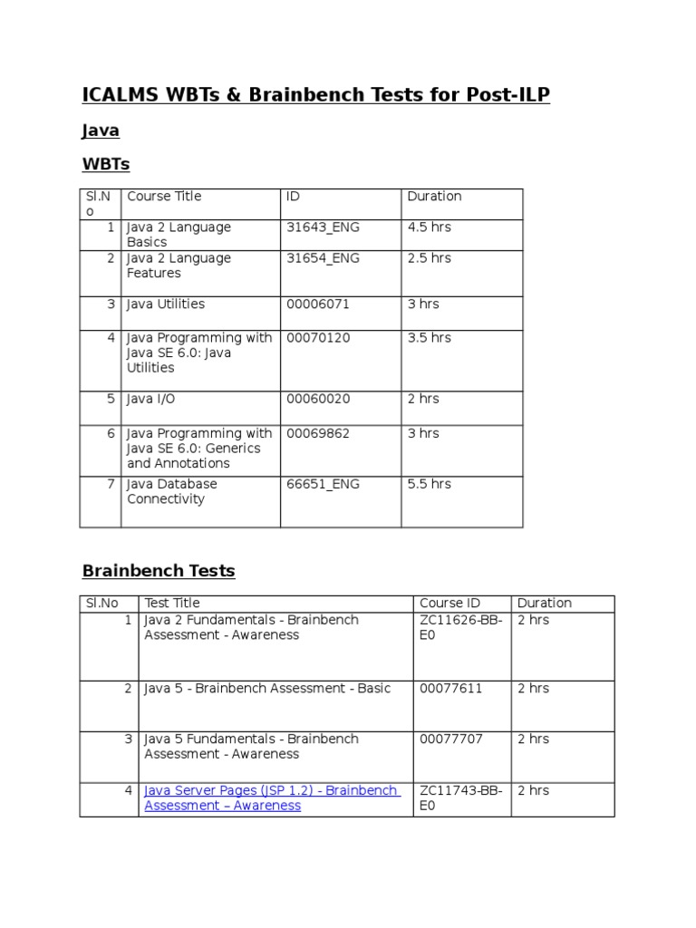 Icalms Wbts And Bb Tests For Post Ilp C Human Resource
