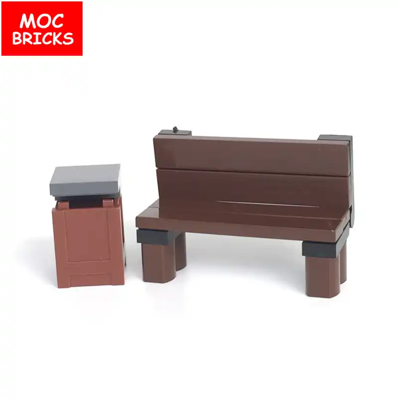 5sets Lot Moc Bricks Diy Park Brown Bench Chair Trash Can Toys