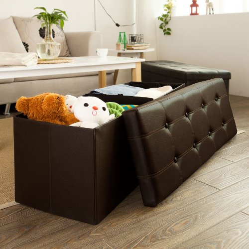 Faux Leather Storage Ottoman Folding Storage Bench With Seat