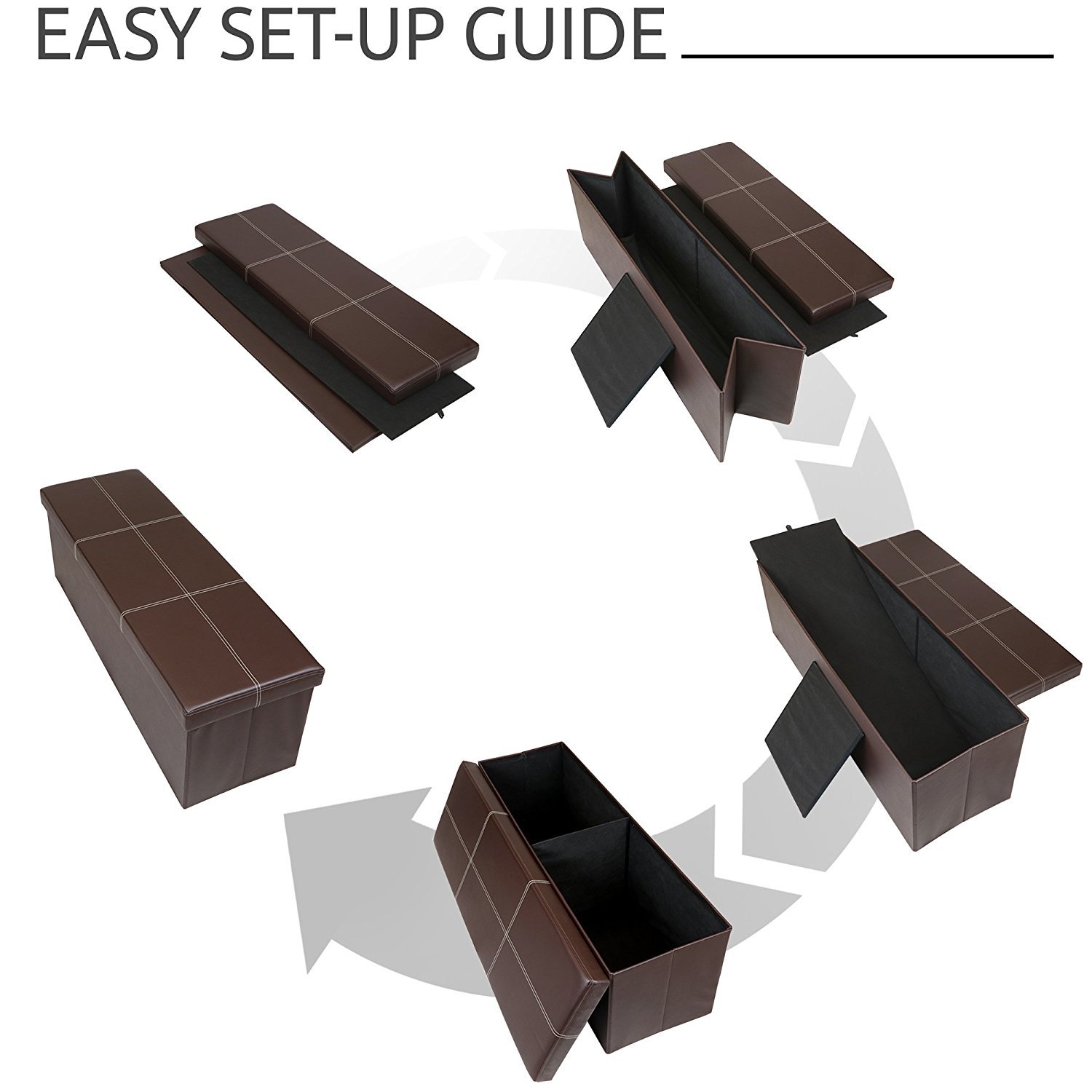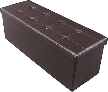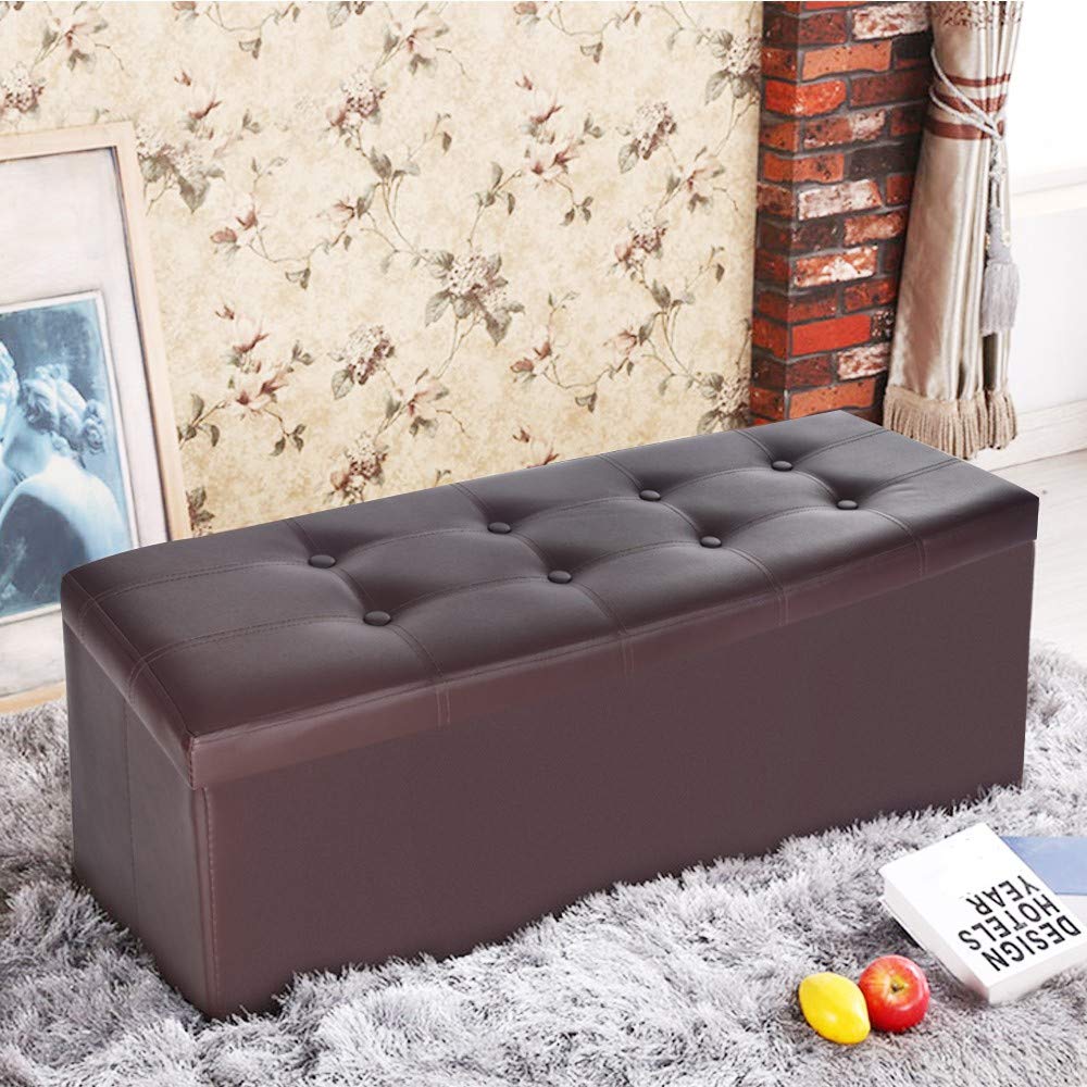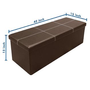 Brown Folding Ottoman Bench Faux Leather Memory Foam Seat Living