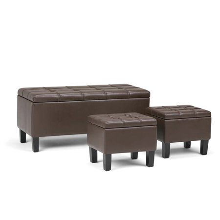 Simpli Home Dover 3 Pc Faux Leather Storage Bench In Chocolate