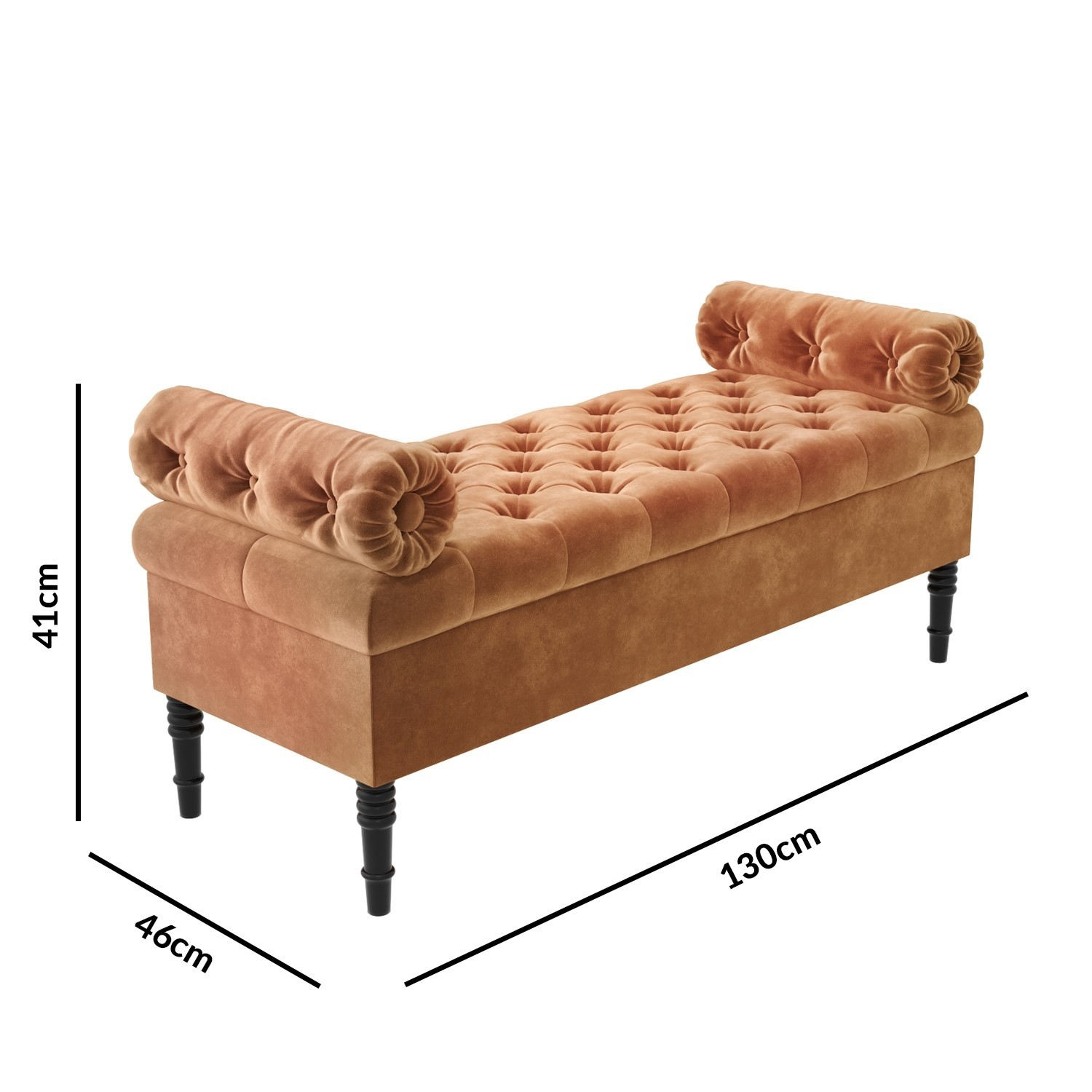 Safina Ottoman Storage Bench In Burnt Orange Velvet With Bolster