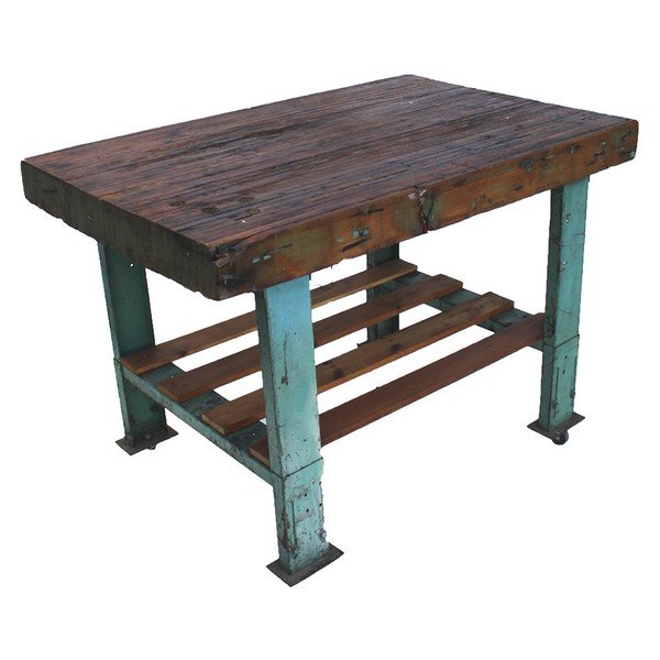 Industrial Work Bench Butcher Block With Turquoise Jun 17 2015