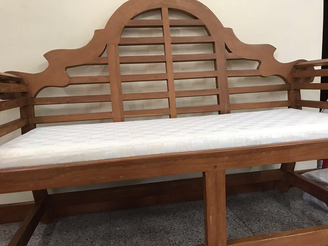 Teak Wood Bench With Backing And Seat Cushion Furniture Others