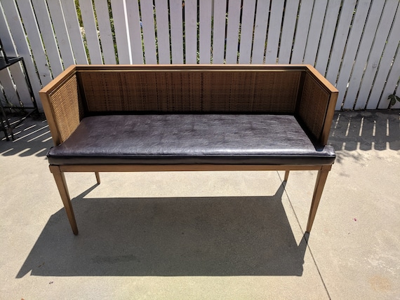 For more information on this video please go to. The frame is constructed of solid ash wood and inlayed with woven cane for a contemporary reinvention of a well loved mid century design. 60495 mid century modern cane seat window bench stool table.
