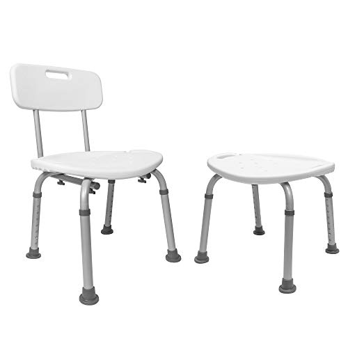Carex bath seat and shower chair with back for seniors elderly. Designed with comfort and safety in mind along with added features such as adjustable height handles slip resistant tips and a convenient notch to hold a shower spray.