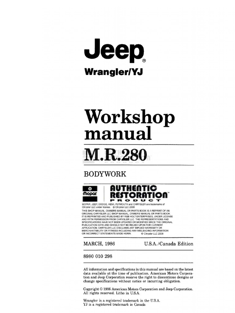 87 88 Yj Repair Manual Motor Oil Transmission Mechanics