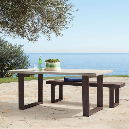 Outdoor Dining Set Tapered Concrete Table And 2 Benches Teak
