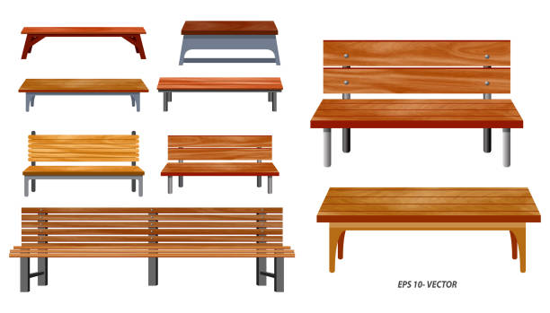 Set Of Realistic Bench Wood Garden Or Street Bench Seat Or Bench