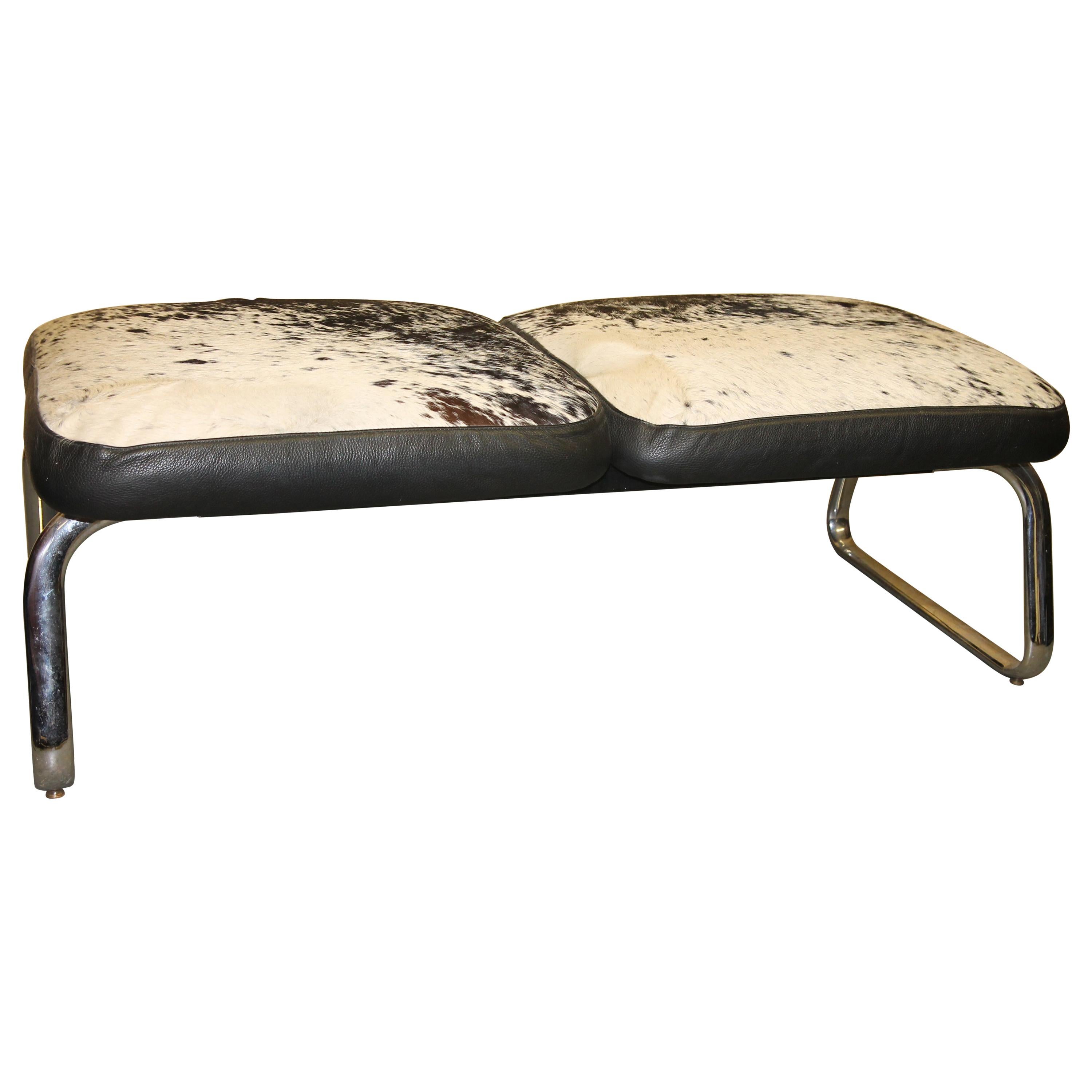 Great Chrome Bench With Cowhide And Leather Upholstery For Sale At