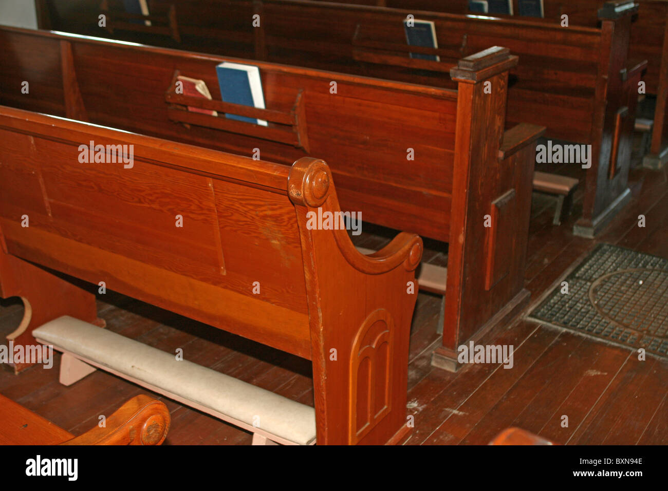 Empty Church Bench Also Called Wooden Pew Without People Stock