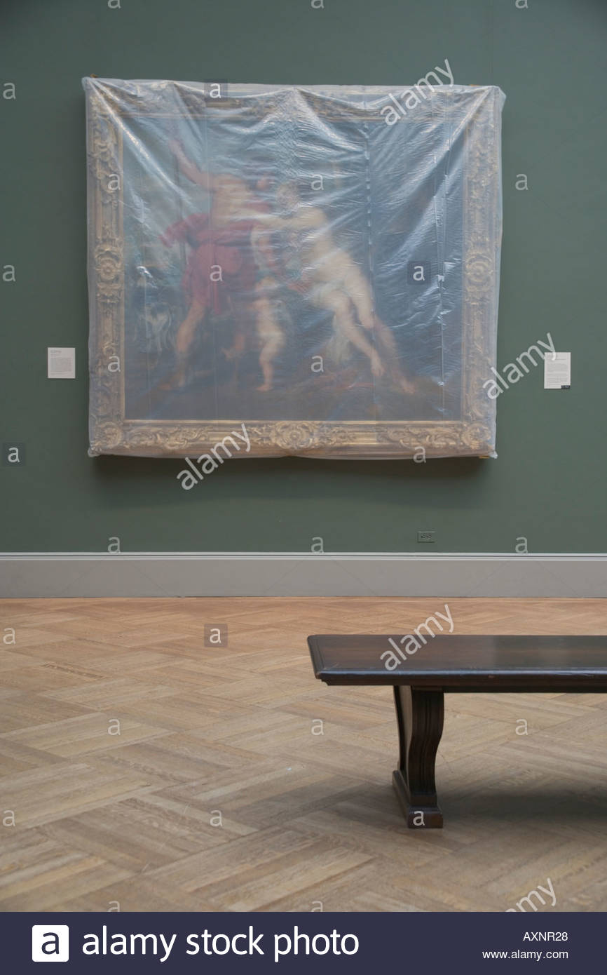A Painting By Rubens Covered With Semi Clear Plastic In A Museum