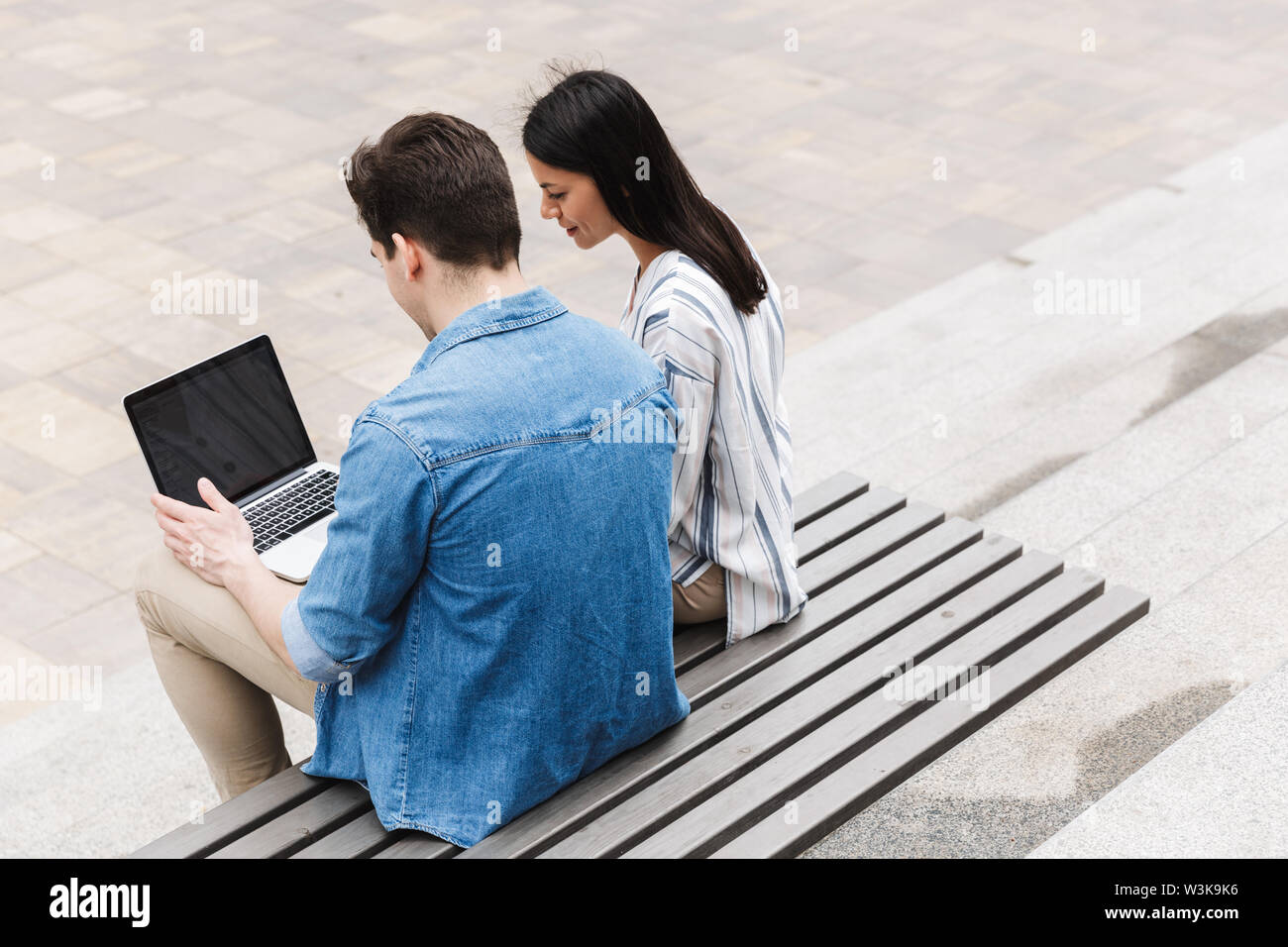 Image From Back Of Cute Couple Man And Woman In Casual Clothes