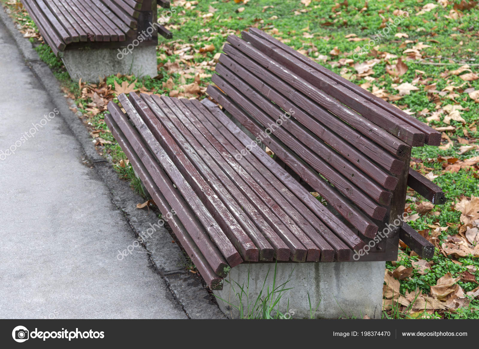 Public Wooden Bench Concrete City Street Park Stock Photo