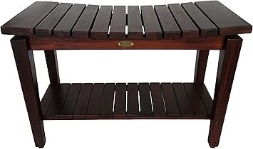 Decoteak Symmetry 30 In Contemporary Teak Shower Bench With Shelf