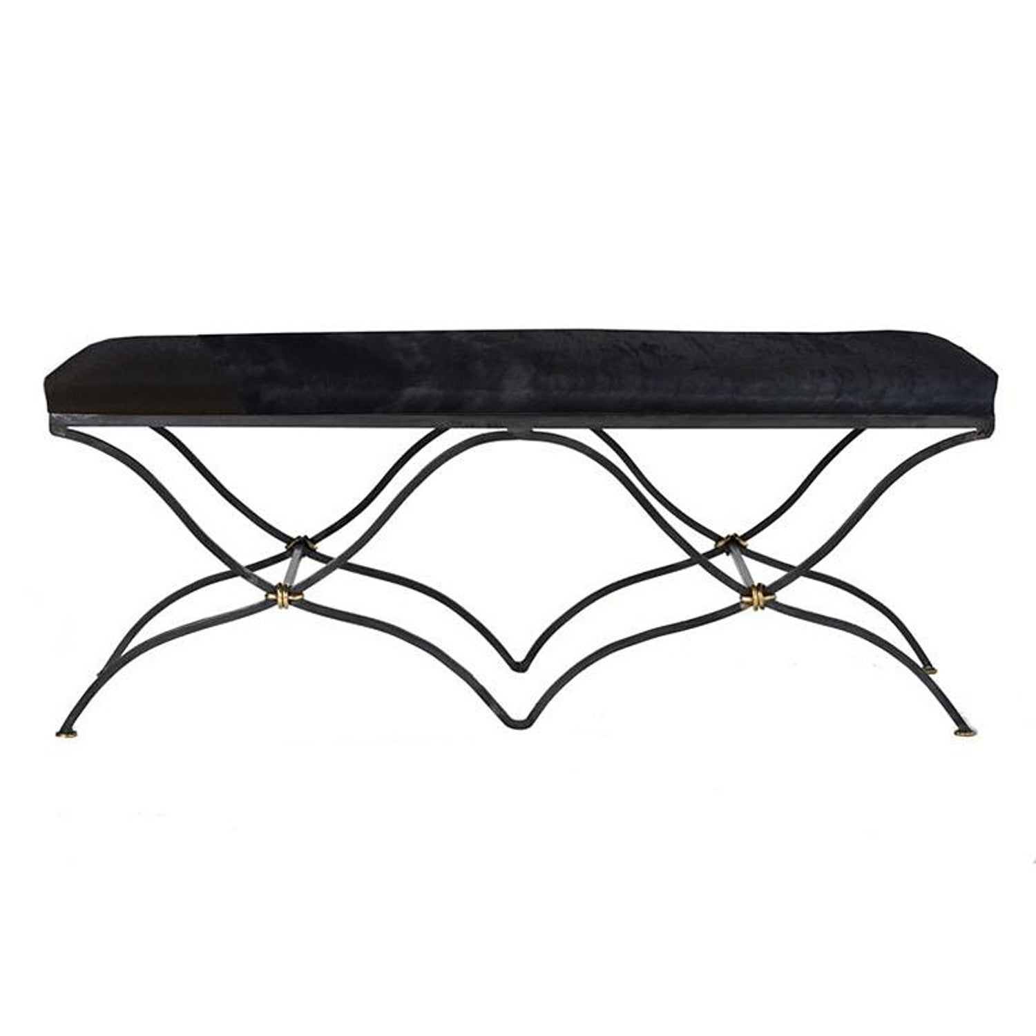 Iron Two Seat Bench In Black Cowhide For Sale At 1stdibs