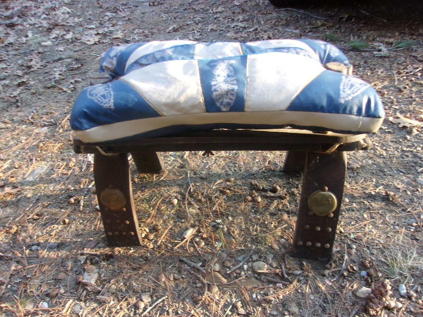 Wood Cowhide Leather Camel Saddle Foot Stool Seat Black X Pieg