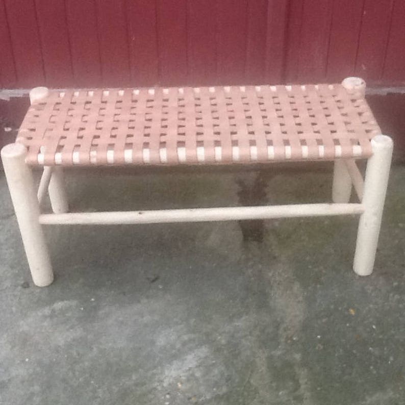 Moroccan Craft Bench In Natural Leather Nude Or Caramel Brown Etsy