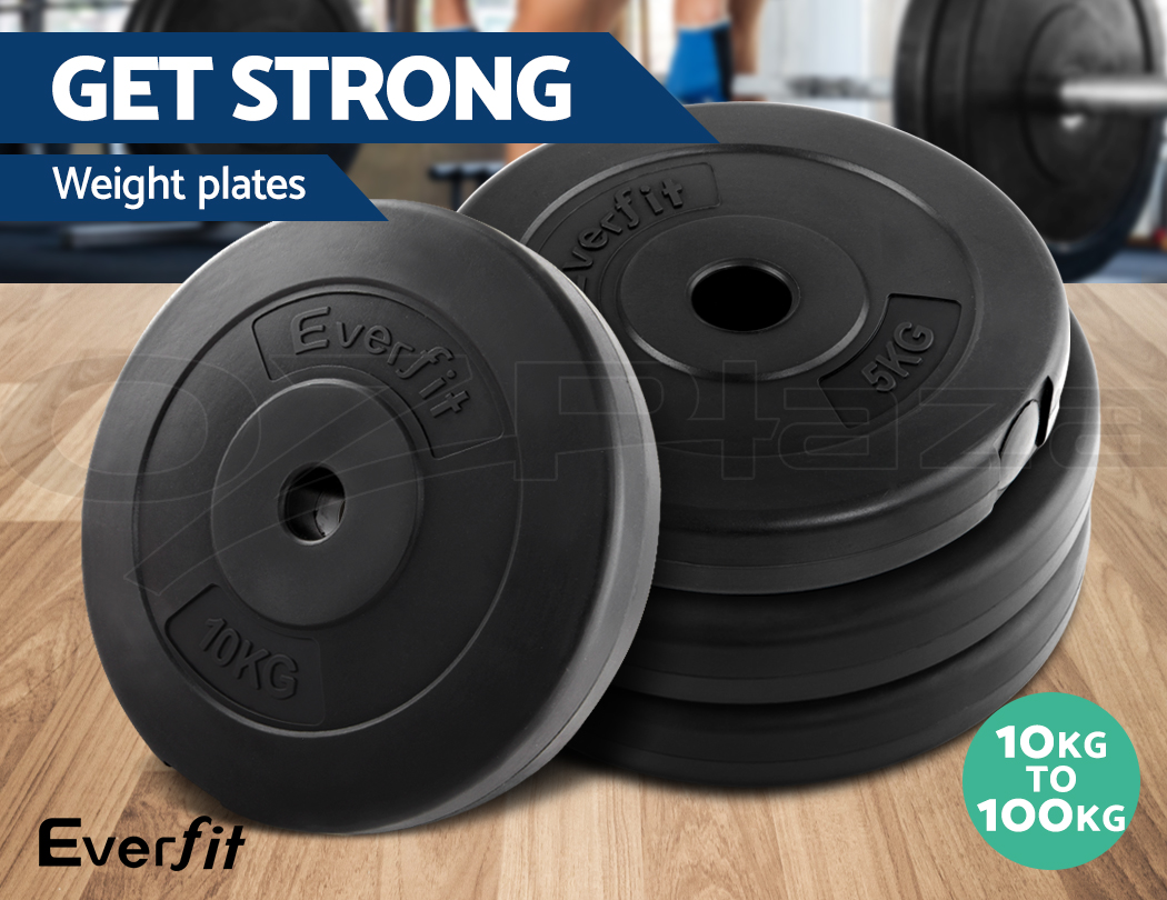 Everfit Barbell Weight Plates Set 10 100kg Gym Home Bench Press