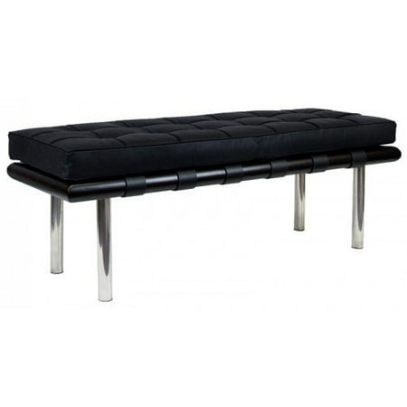Barcelona Style Black White Full Real Italian Leather 2 Seat Bench