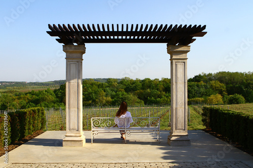Park Bench Italian Courtyard Man Walking Stock Photo Edit Now