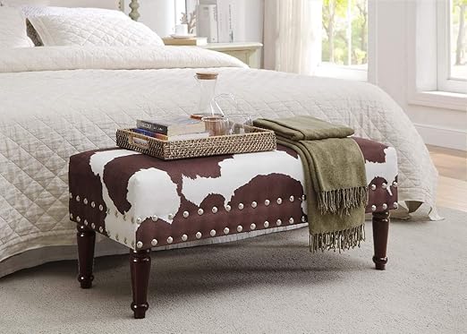 Convenience Concepts Faux Cowhide Bench With Nailheads